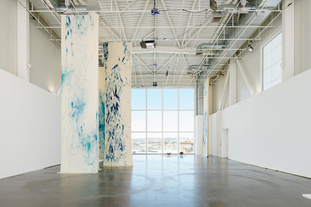 ‘The mother is (...) in reality a partial substitute for the ocean’[1] and it is in a gigantic aquatic matrix opening onto the harbour of Marseille and the northern districts of the city that Sophie Bueno-Boutellier plants, like floating seaweed, immense painted canvases, producing a feeling of oceanic infinity articulating not so much a didactic path marked out with immutable truths as intuitive paths conducive to affective interactions.